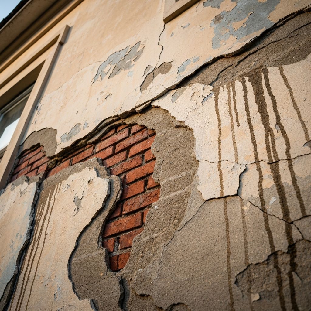 - Fissures visibles sur la façade